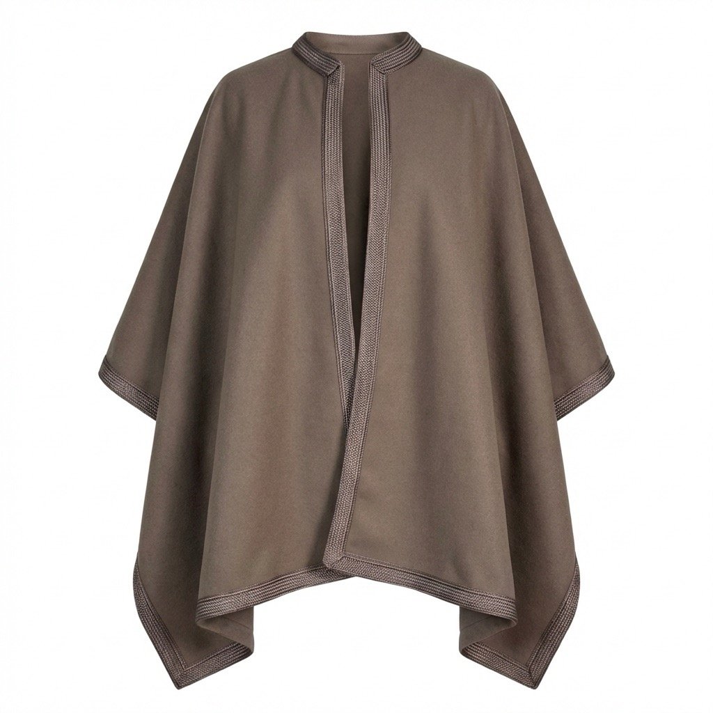 Cape en cachemire beige sable avec finition sfifa ton sur ton, un indispensable chic et confortable.